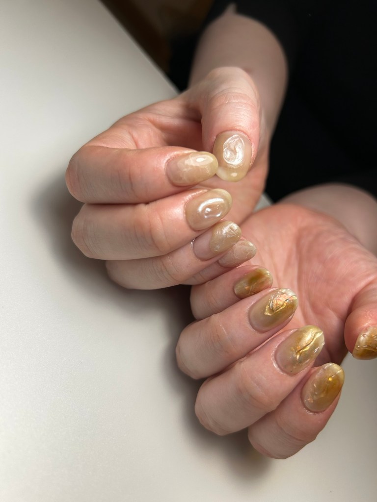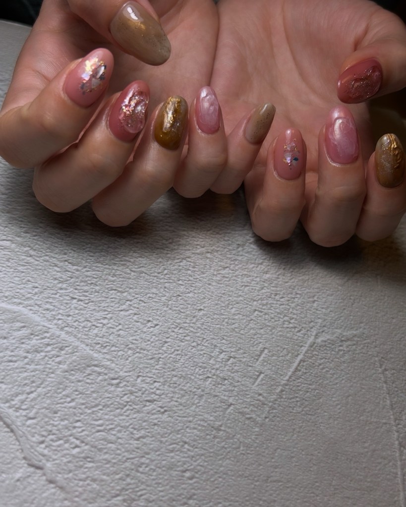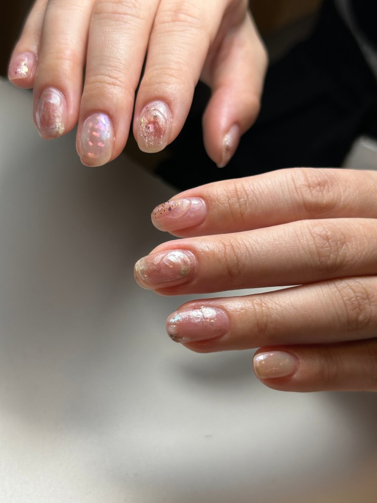 ・淡いカラーのマグネットネイルは、春の光によく映えます。