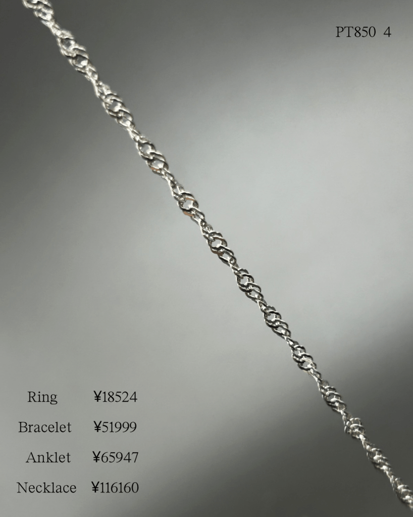 - PT850は、日常的な使用による変形や傷に強いという特徴があります。そのため、ネックレスやブレスレットなど、日常的に身に着けるジュエリーに適しています。