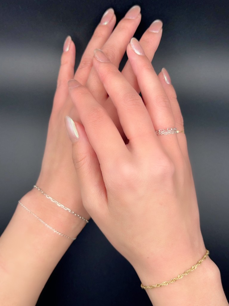 パーマネントジュエリーは、肌に直接触れるため、金属アレルギーのリスクがあります。特に、ニッケルなどの金属アレルギーをお持ちの方は、注意が必要です。