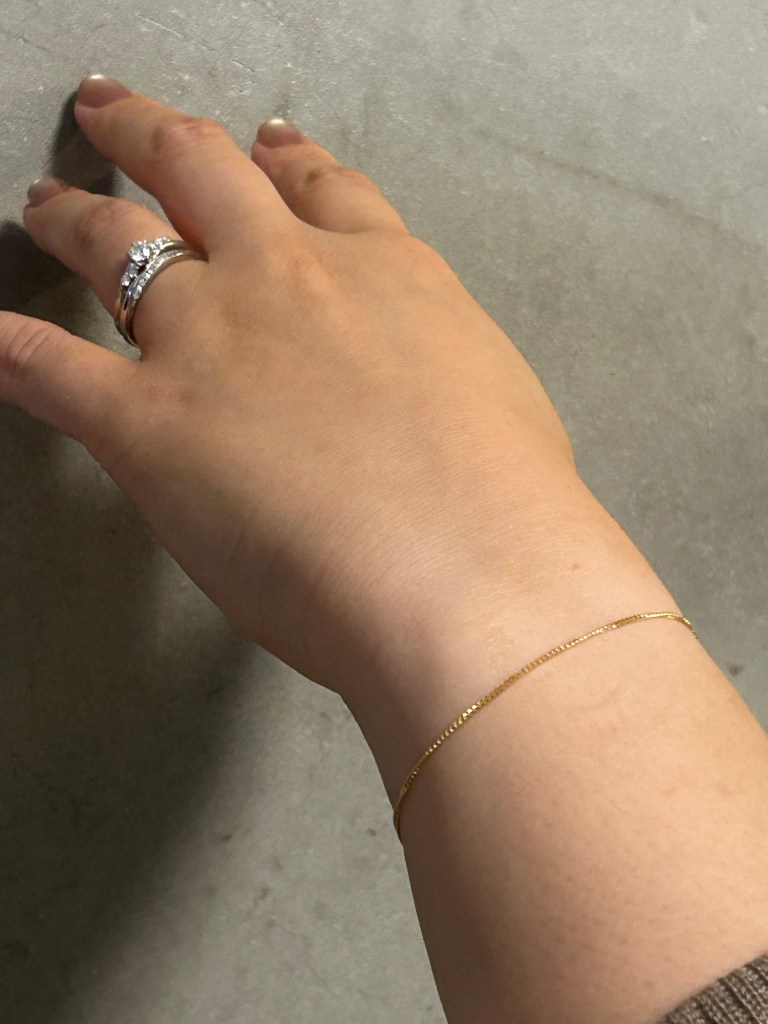 パーマネントジュエリーとは、留め具のないチェーンを肌に直接溶接して着けるジュエリー。
